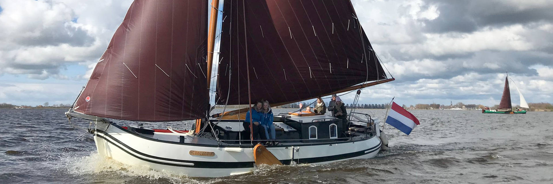Onze trots: de Tjalk Concordia. Een karakteristieke zeilende tjalk van 11 meter met een capaciteit van 12 maximaal personen. Exclusief te huur (met schipper) of boek een dagtocht.