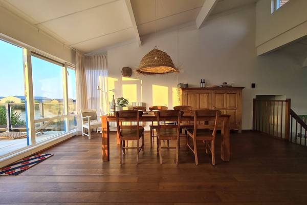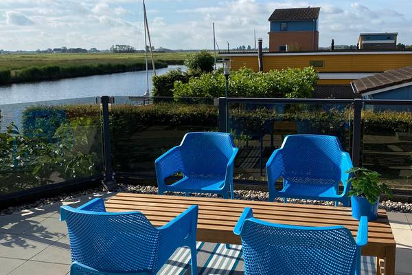 - Twee grote terrassen op de eerste verdieping. Ochtend- en avondzon. Beneden op de steiger een derde terras met picknicktafel.