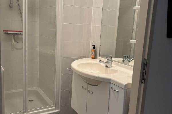 - 1 slaapkamer met boxspring 180x200 met aansluitend een badkamer.