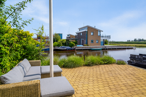 - 12 meter steiger met ligplaats. Ruime tuin met terras aan het water. Huisdieren: 1 hond is toegestaan