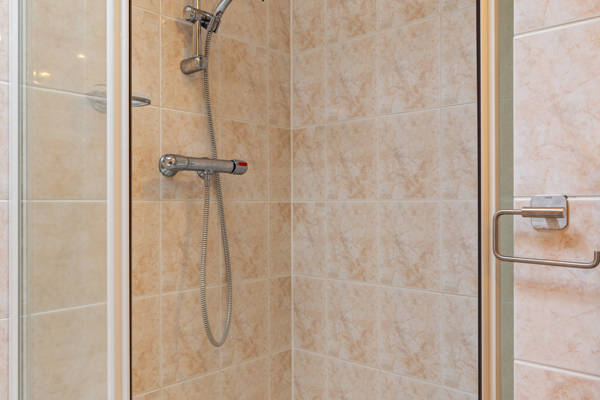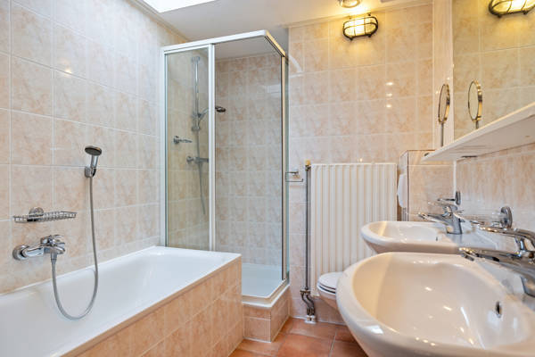 - De grote slaapkamer heeft een eigen badkamer met ligbad, douche en toilet. De twee overige slaapkamers delen een douche met wastafel en separaat toilet.