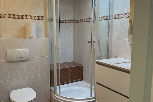 - De grote slaapkamer heeft een eigen badkamer met douche en toilet. De twee overige slaapkamers delen een douche met wastafel en separaat toilet.